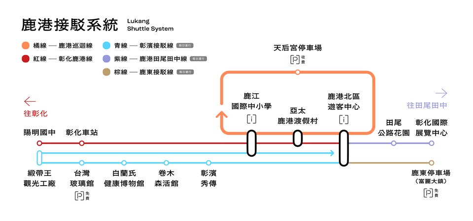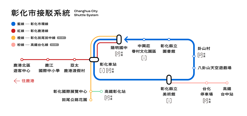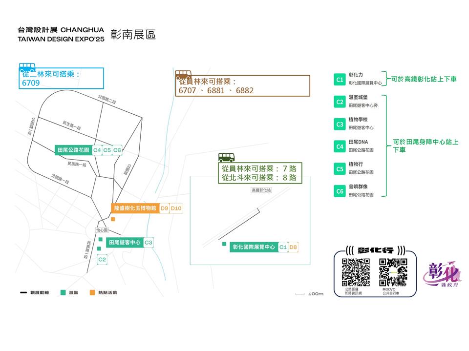 新聞焦點 2025台灣設計展|交通接駁與停車全攻略—便捷暢遊彰化三大展區 發布日期 2025/09/28~2025/10/28 | 發佈單位: 交通處 | 發佈日期: 運輸規劃科邱科長 047536011 | 更新日期 2025/09/28 | 瀏覽人數: 89人 2025台灣設計展將於彰化縣盛大舉辦,由彰化縣政府與台灣設計研究院共同主辦,並由經濟部產業發展署指導。此次展覽涵蓋彰化市、鹿港鎮、田尾公路花園及彰化國際展覽中心所屬的彰南展區等三大主要展區,是自2003年以來規模最大、範圍最廣的一次盛會。 10月5日、6日將率先開放鹿港展區進行試營運搶先看,正式展期自10月10日至10月26日,共計17天。週日至週四各展館開放至晚上6點,週五及週六延長開放至晚上8點。鑑於本次展覽規模盛大、各展區主題豐富多元,且展期涵蓋三個周末及兩個連續假期,建議民眾分日分區參觀,輕鬆掌握展覽精華。開展期間,主要展區周邊還將同步舉辦市集、表演和裝置藝術等豐富活動,熱忱歡迎各界朋友一同參與,共襄盛舉。 為方便參觀民眾,彰化縣政府規劃了共9條接駁路線,提供便捷的交通服務。平日及例假日常態運行的4條路線包括彰化市環線、彰化鹿港線、鹿港巡迴線及田中田尾線,分別連接彰北展區、彰南展區及彰化、鹿港市區。假日加開5條路線,包括彰濱接駁線、鹿東接駁線、彰化田尾田中線、鹿港田尾田中線以及高鐵台化線。其中,彰濱接駁線、鹿東接駁線和高鐵台化線提供假日免費路外停車及高鐵台中站直達彰化展區的接駁;彰化田尾田中線與鹿港田尾田中線則串聯彰北及彰南展區,方便展區間移動。 開展期間,縣府亦配合臺鐵與高鐵公司機動增開班次,提升人潮疏運效率,鼓勵民眾多利用大眾運輸及展區接駁車前往參觀。 停車方面,除提供各展區周邊收費停車場資訊外,假日特別規劃免費大型路外停車場,包括彰化展區的台化停車場;鹿港展區的鹿東停車場、鹿江國際中小學、鹿港文小五停車場及台灣玻璃館。建議民眾自行開車前往展區時,彰化區域平日可停放扇形車庫停車場,假日則可利用台化停車場;鹿港區則平日可使用鹿港文小五停車場,假日建議停靠台灣玻璃館或鹿東停車場;彰南展區平假日皆可停靠怡心園停車場及彰化國際展覽中心後方停車場,再步行或搭乘接駁車前往。 此外,縣府整合展區周邊多條公車路線,並於各主要展區設置臨時公共自行車站點,租借前請先下載 MOOVO 公共自行車 APP 或至官網註冊會員後使用,享受便捷的短途交通。 2025台灣設計展在彰化盛大展開,縣府多元規劃各項交通及停車措施,邀請民眾多利用公共運輸及接駁服務,輕鬆安全地暢遊展覽各展區。 2025台灣設計展-交通方式(2025台灣設計展官網):https://designexpo.org.tw/designexpo/zh-TW/visit?target=visit-info 2025台灣設計展-公共交通資訊:https://tinyurl.com/4ba68mzu 2025台灣設計展-響應店家:https://tinyurl.com/nshjnjp7