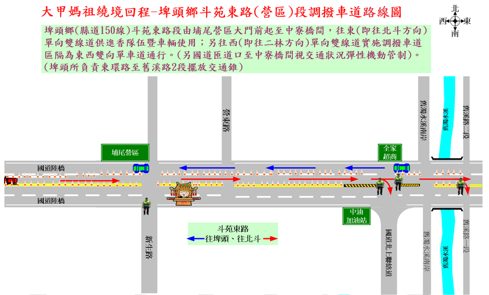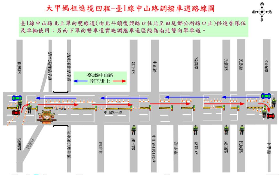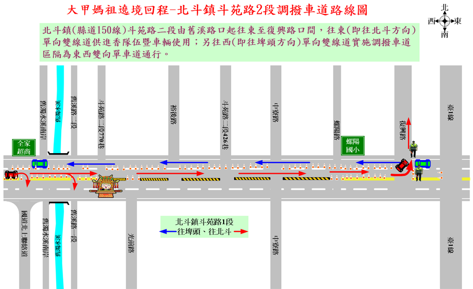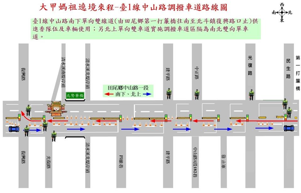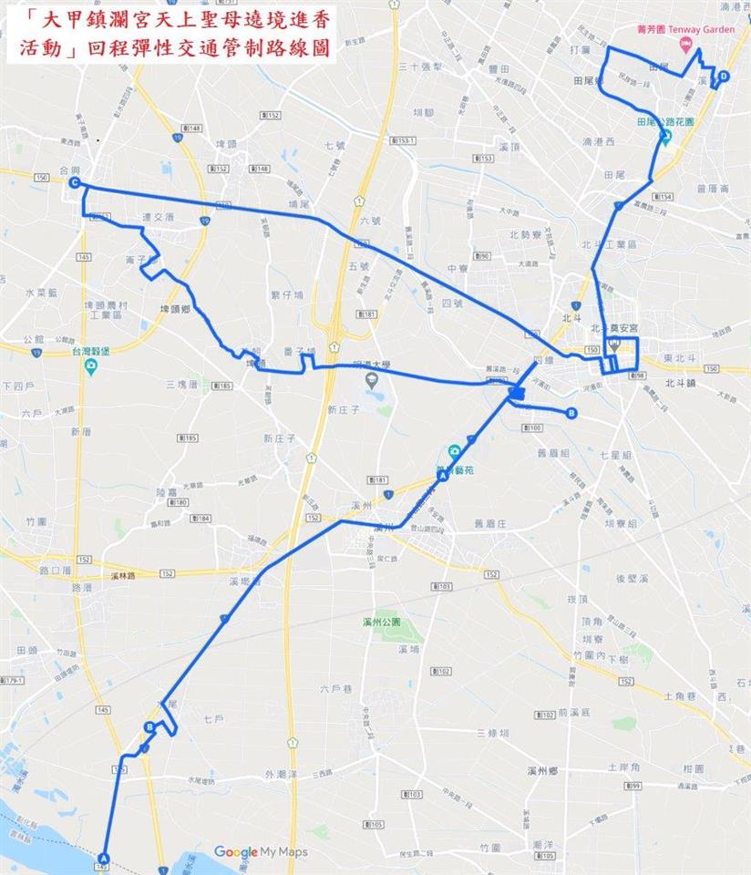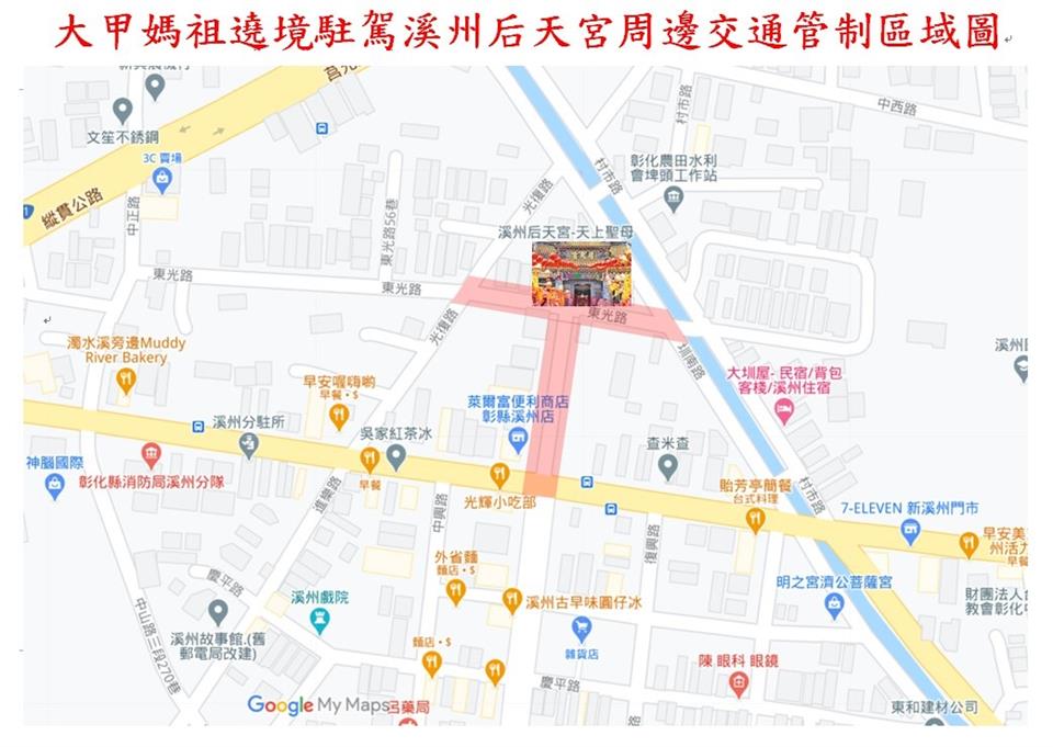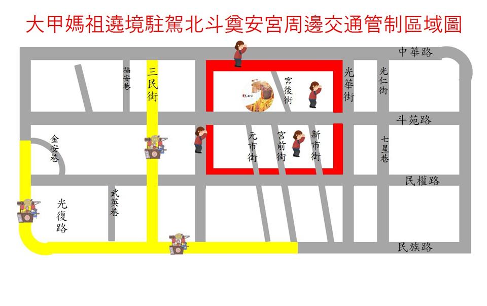 公告資訊 彰化縣警察局北斗分局2026大甲鎮瀾宮天上聖母遶境進香活動交通管制公告 發布日期 2026/04/10~2026/04/24 | 發佈單位: 交通處運輸規劃科 | 發佈日期: 劉芸辰 7536020分機6020 | 更新日期 2026/04/10 | 瀏覽人數: 10人 為維護115年4月19日、4月23及24日「大甲鎮瀾宮天上聖母遶境進香活動」行經期間交通秩序,彰化縣警察局北斗分局將視交通狀況彈性管制車輛,詳如附件及圖片說明。