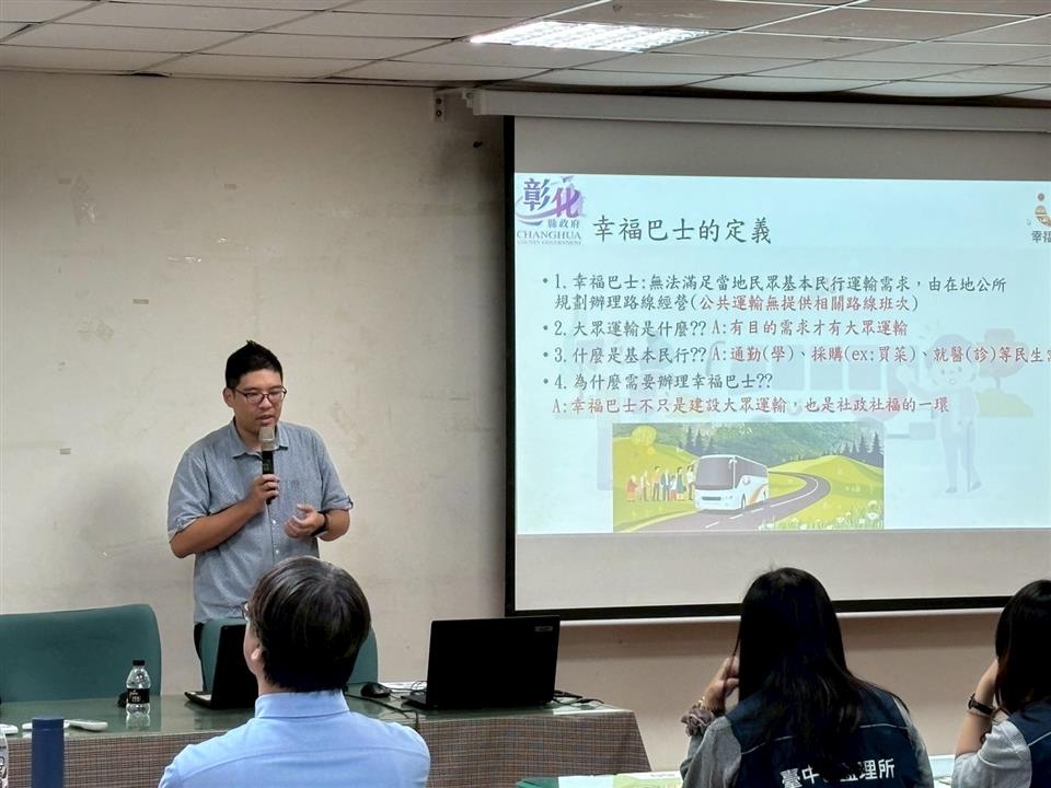 其他活動 「幸福巴士計畫教育訓練」 邀請金運獎得主分享幸福巴士實務經驗 發布日期 2025/11/21~2025/12/28 | 發佈單位: 交通處 | 發佈日期: 吳小姐 04-7536016分機6016 | 更新日期 2025/11/28 | 瀏覽人數: 11人 彰化縣政府交通處與彰化縣公共運輸專案辦公室共同舉辦「114年度彰化縣幸福巴士計畫教育訓練」,特別邀請「國立東華大學副教授暨東部區域運輸發展研究中心執行長」陳正杰與「台一大車隊董事長」張逸涵擔任講座,面對客運業者缺班缺員、偏鄉運輸與長者出行需求,分享如何以幸福巴士透過彈性預約、小型化運作提升公共運輸服務。2位講座皆是交通部金運獎得獎單位的重要推手,藉由寶貴的傳承與分享,未來期望協助本縣更多鄉鎮市推動幸福巴士,守護縣民交通安全與便利。
