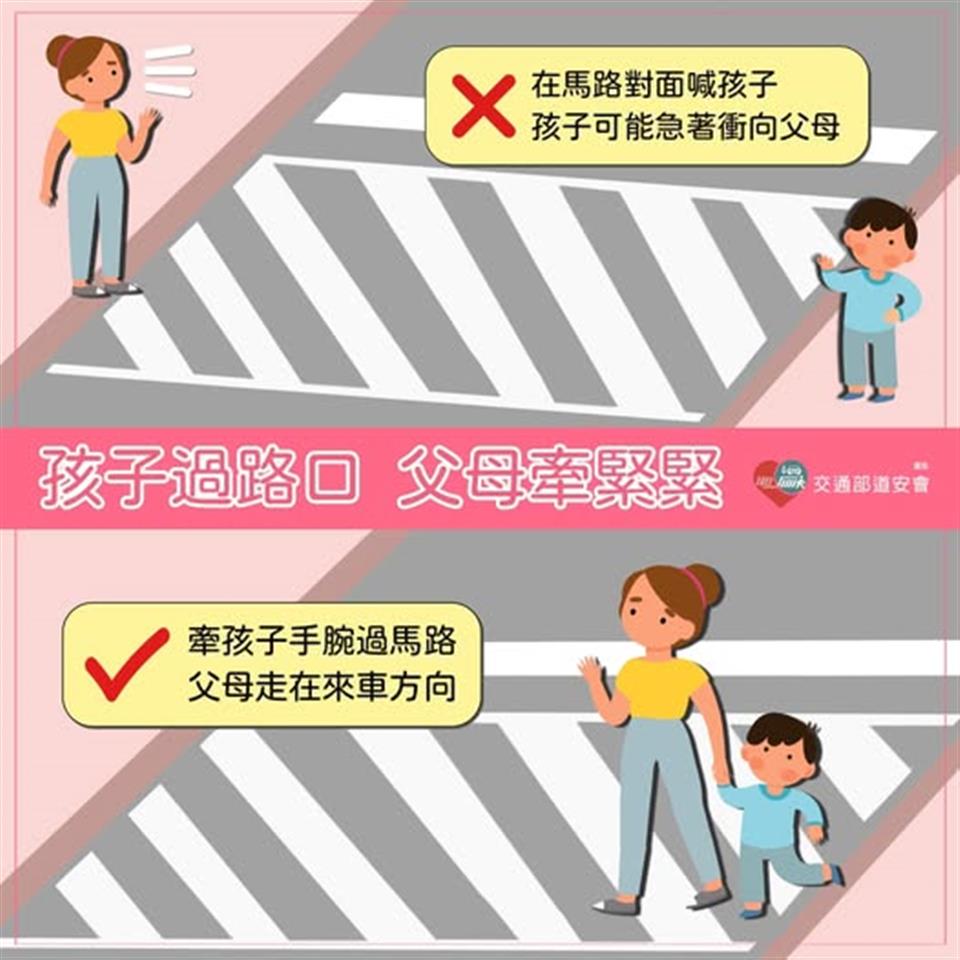 孩子過路口 父母牽緊緊