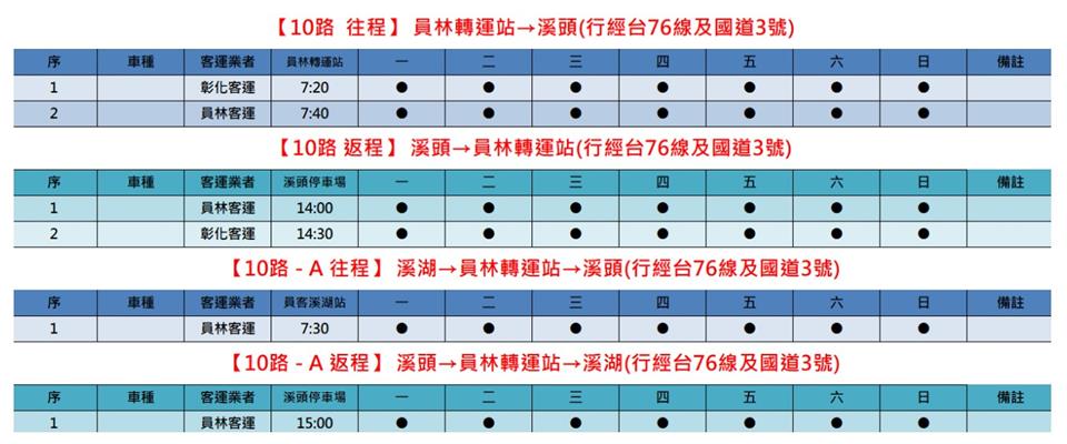 10路員林轉運站-溪頭(經台76線、國道3號)